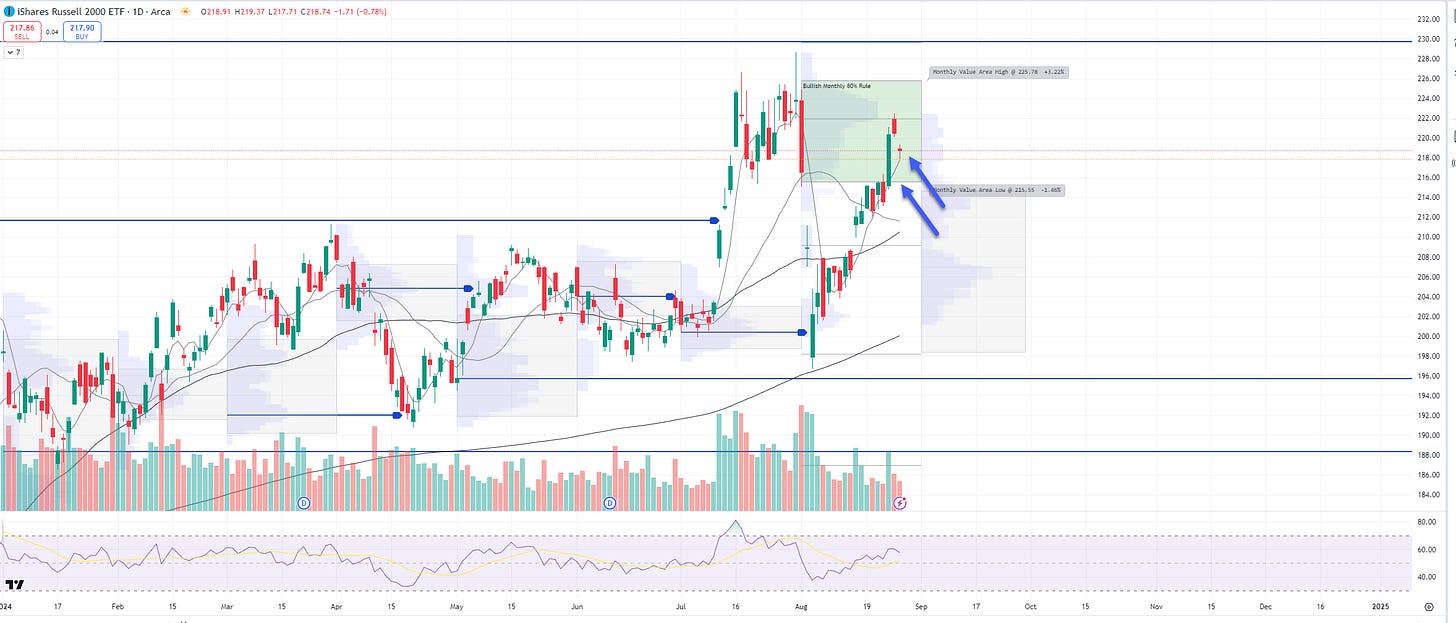 IWM - Russell Small Cap ETF- Daily Chart: Price ind. -0.4% and price has moved down to its 5d MA and that will be interesting to see if price holds its short-term MA for upside momentum to continue, next support $215.55